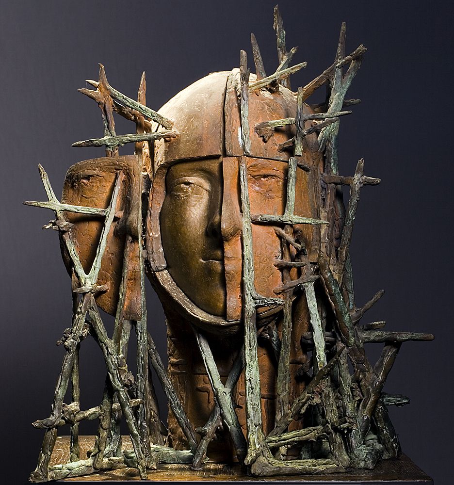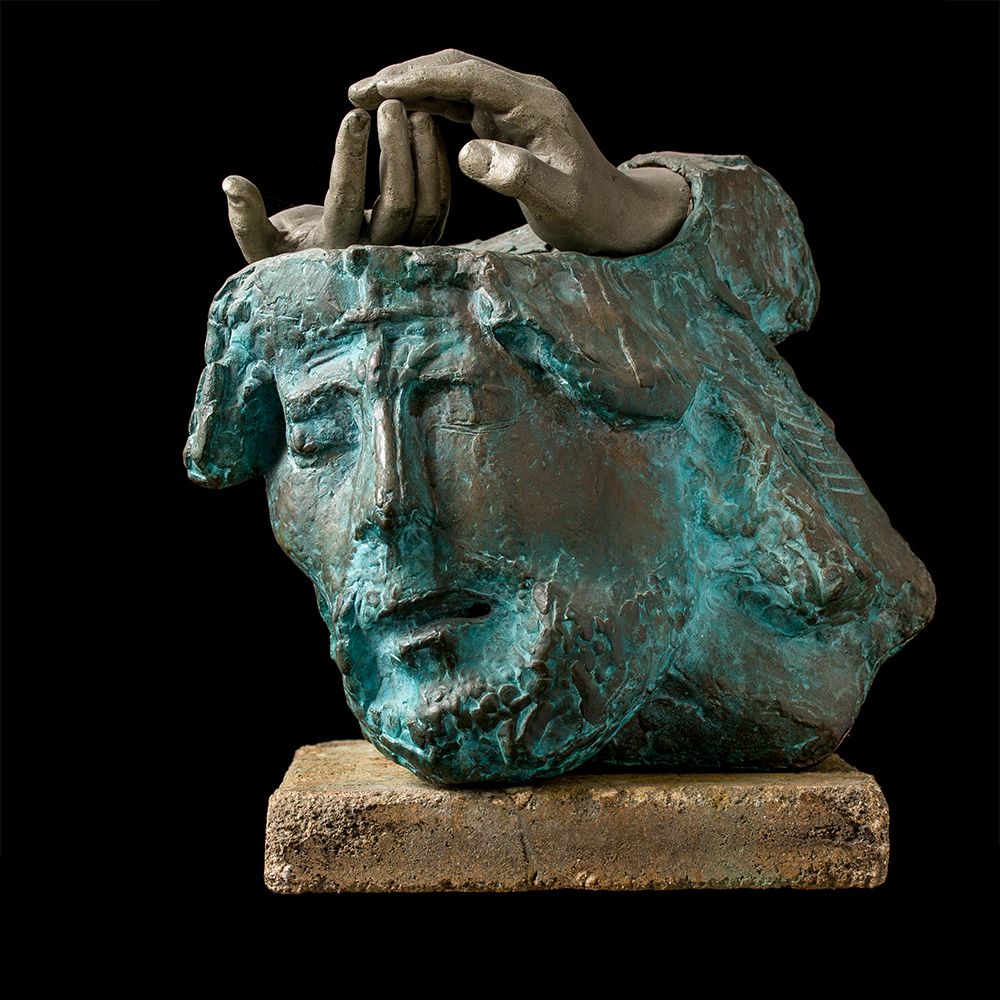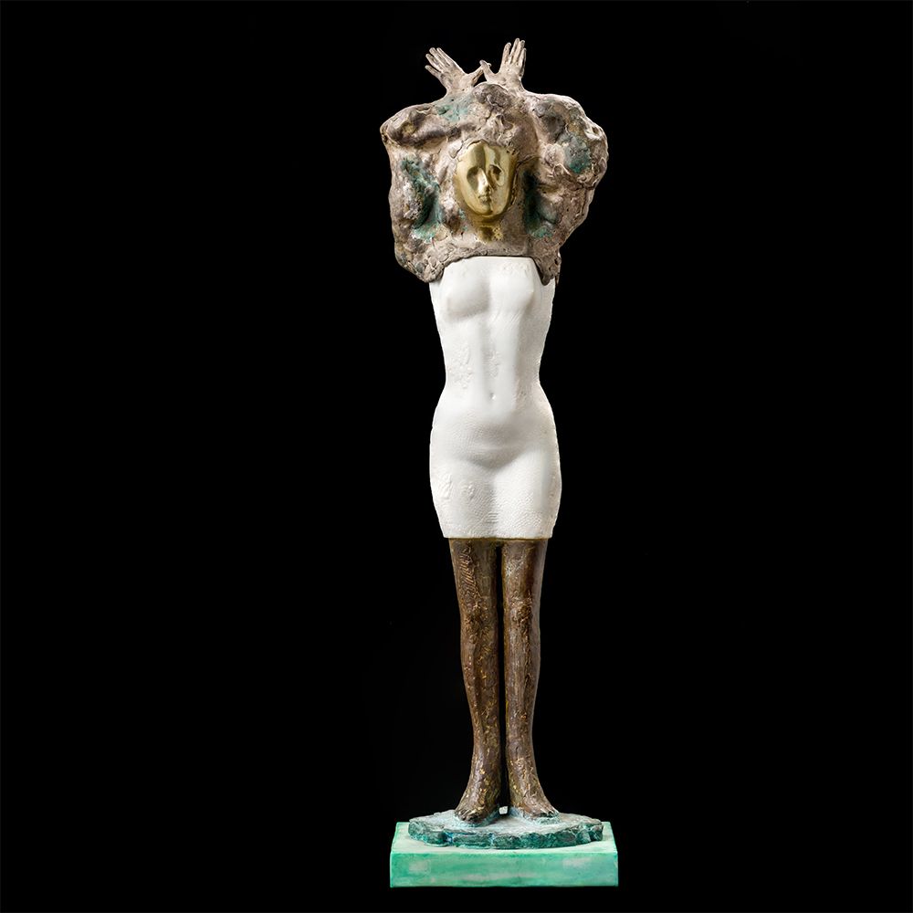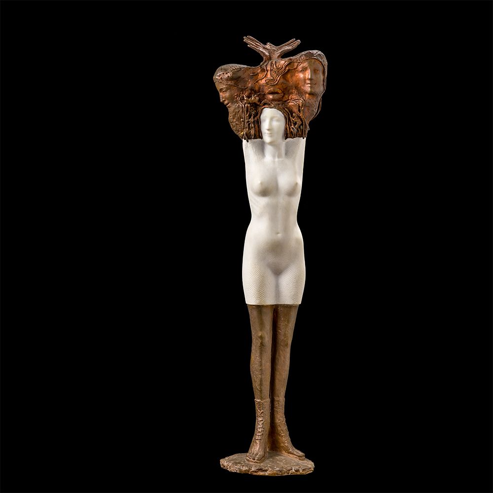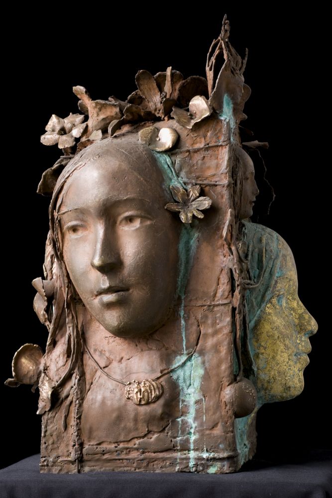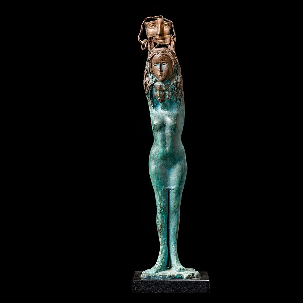 Mascara entera y mascara rota y personas mitologicas sobre la humanidad