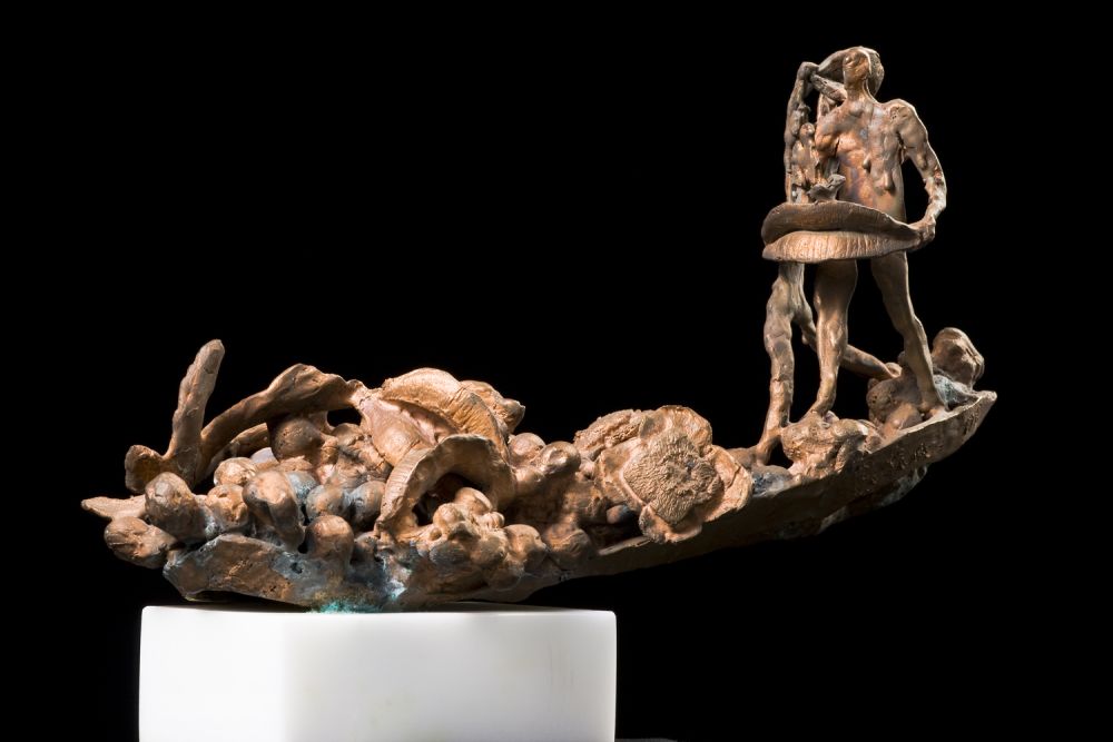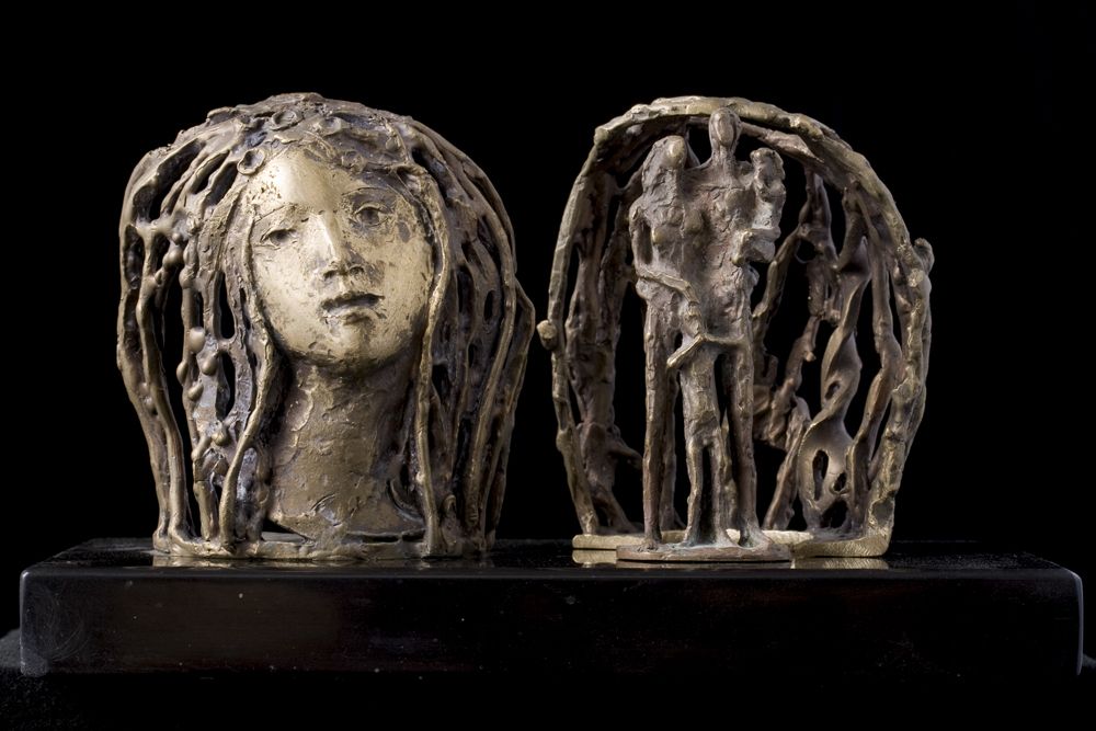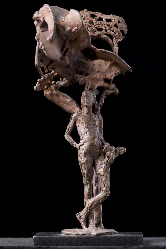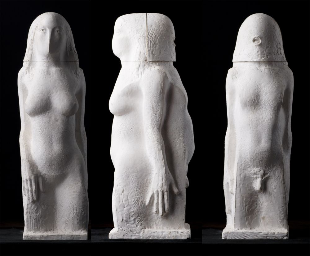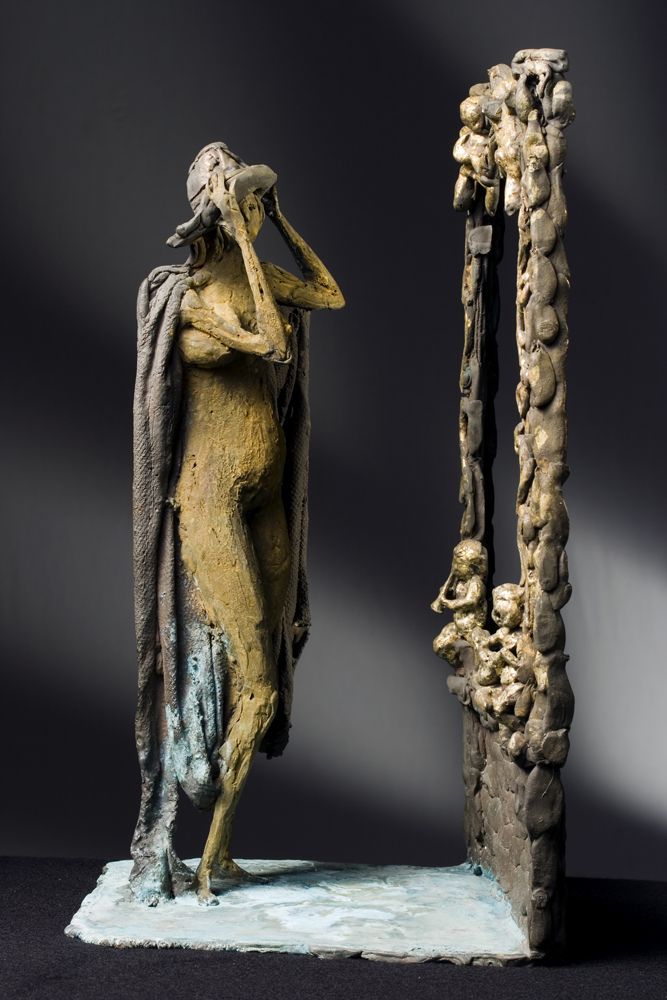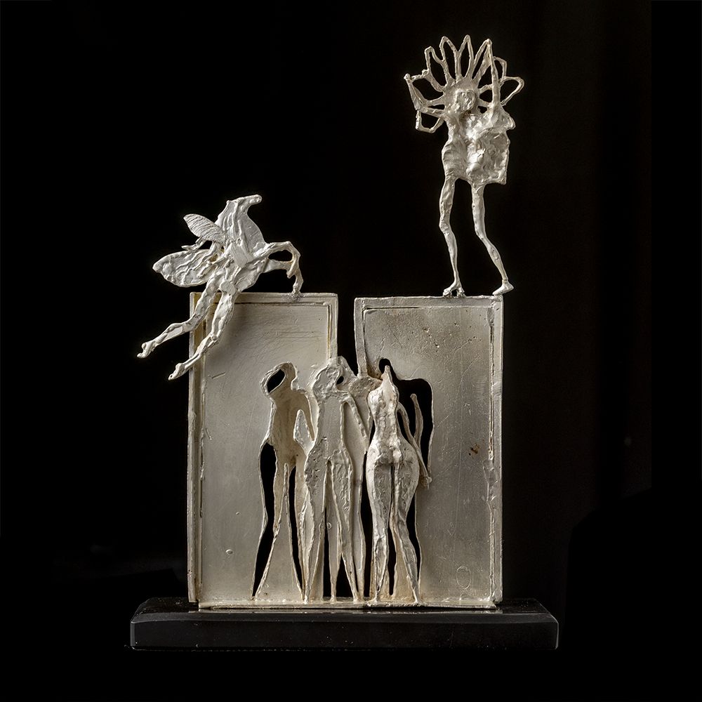 Mascara entera y mascara rota y personas mitologicas sobre la humanidad