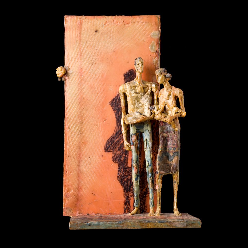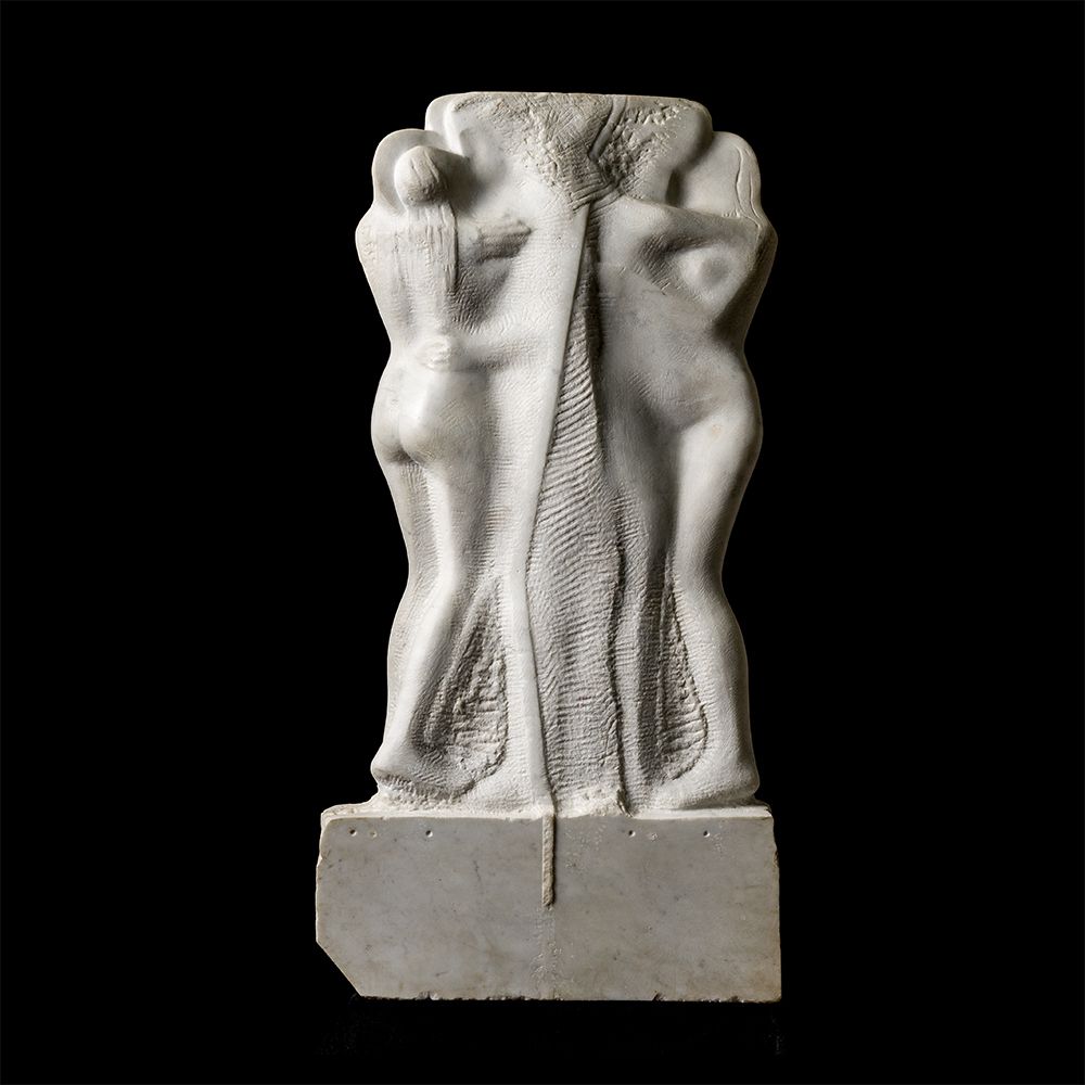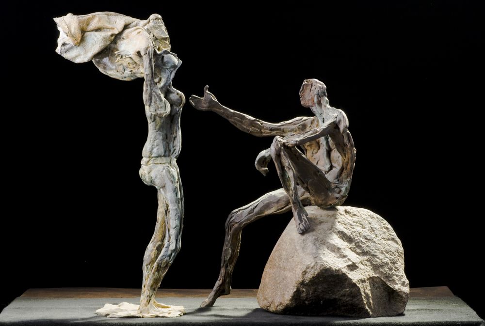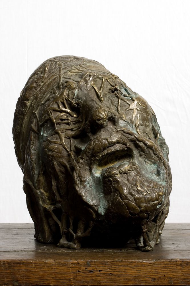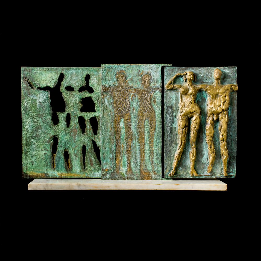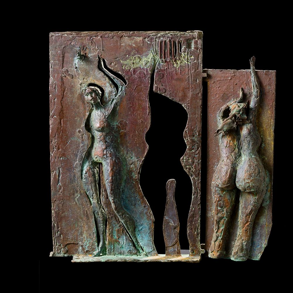 Mascara entera y mascara rota y personas mitologicas sobre la humanidad